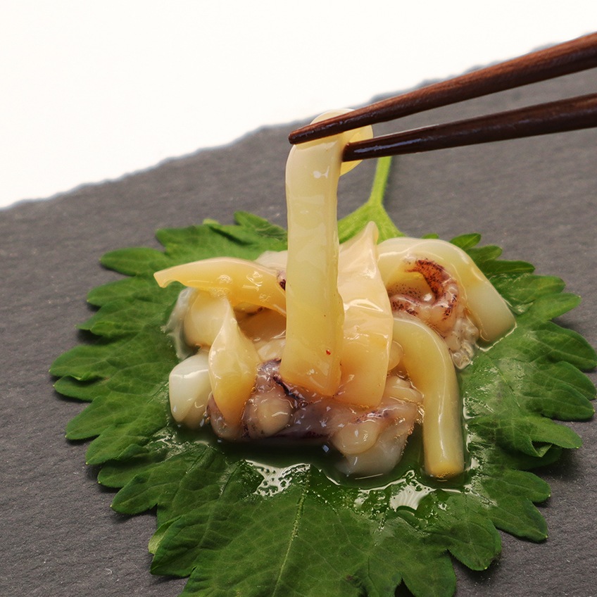 刺身で食べても絶品なこの鮮度抜群のイカを、あえて贅沢な「生珍味」に仕上げました。